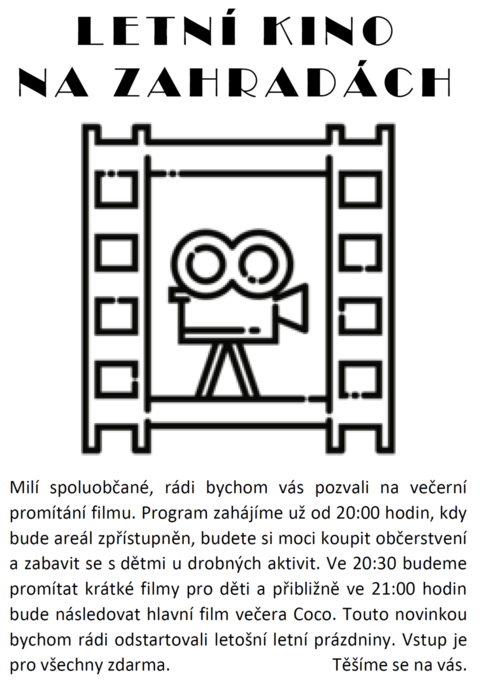 Úvod > Život v obci > Aktuality > Letní kino Na Zahradách