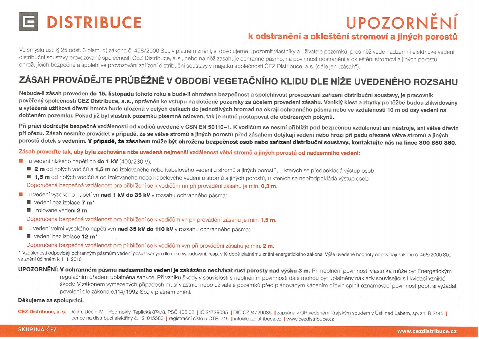 Úvod > Život v obci > Aktuality > Odstranění větví v blízkosti elektrického vedení