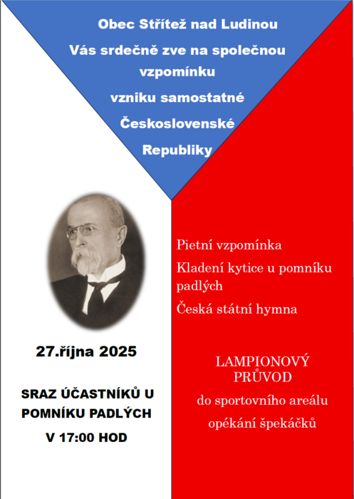 Obec Střítež nad Ludinou Vás srdečně zve na společnou vzpomínku vzniku samostatné Československé Republiky.