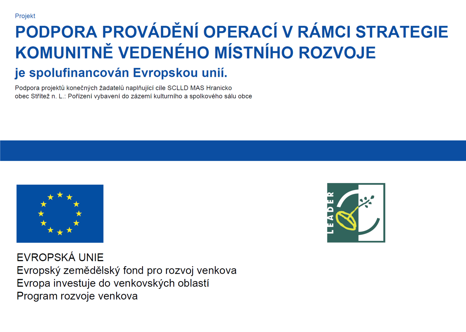 Úvod > Život v obci > Dotace > Pořízení vybavení do zázemí kulturního a spolkového sálu obce