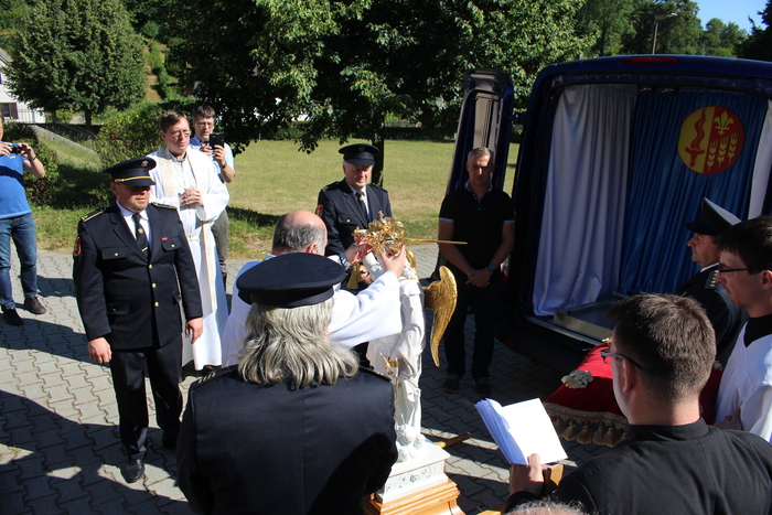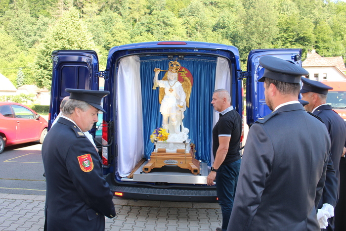 Naše farnost měla ve středu 3.července 2019 možnost přivítat sochu sv. Michaela. Za doprovodu hasičů socha dorazila v podvečer před budovu školy. Odtud slavnostním průvodem doprovodili přítomní sochu do kostela sv.Matouše. Následovala mše svatá a věřící měli příležitost využít soukromé adorace. Ve čtvrtek odpoledne po mši svaté vyprovodili kněží sv.Michaela na ramenou dobrovolných hasičů k další cestě.